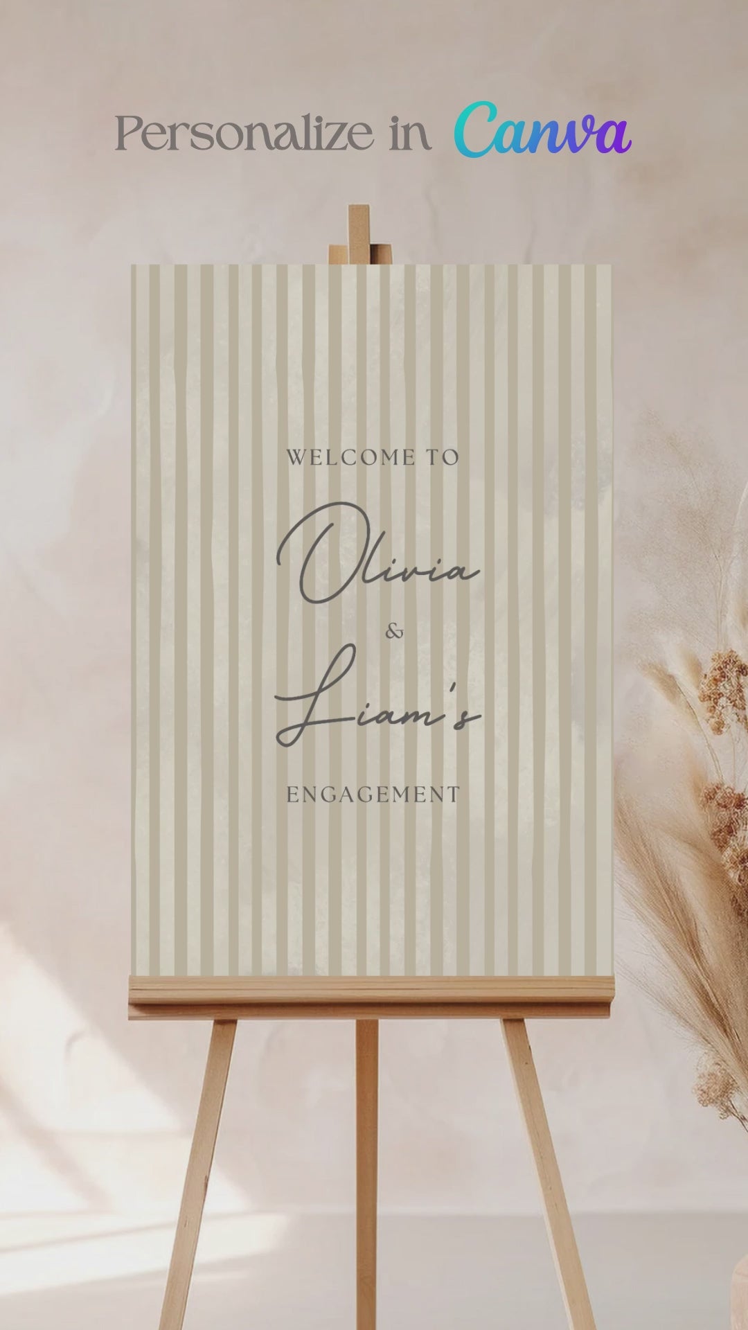 Are you planning a wedding event or any other special celebration and want to add your own personal touch? Our stationery designs are perfect for the DIY enthusiast. This modern striped welcome sign is the perfect fit for any type of event or theme with a contemporary flare. All text (and its colours) can be customized to your preference. The background stripes, due to artist copyright, cannot be edited into colours, but can be adjusted in transparency. Save time and money without compromising on quality or style by bundling your stationery.