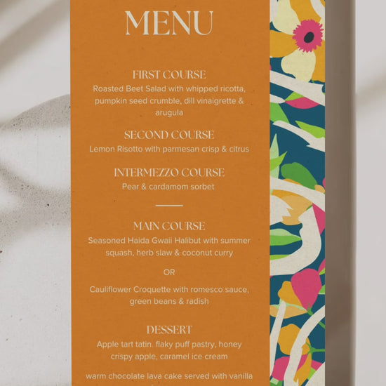 Are you planning a wedding and want to add your own personal touch? Our stationery designs are perfect for the DIY bride. Our colorful menu and name place cards are 100% editable, except for the background artwork (due to artist copyright). You can customize the text and colours to suit your preference to match your events theme. Save time and money without compromising on quality or style by bundling your stationery.