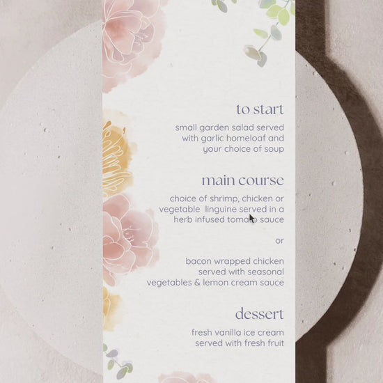 Are you planning a wedding and want to add your own personal touch? Our stationery designs are perfect for the DIY bride. Our soft floral menu 100% editable, except for the artwork elements (due to artist copyright). You can customize the text and colours to suit your preference to match your events theme. Save time and money without compromising on quality or style by bundling your stationery.
