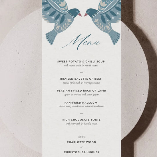 Are you planning a wedding, birthday, engagement, bridal shower or any other celebration and want to add your own personal touch? Our stationery designs are perfect for the DIY enthusiast. Our bird menu is inspired by folk art and is 100% editable, except for the artwork elements (due to artist copyright). You can customize the text and colours to suit your preference to match your events theme. Save time and money without compromising on quality or style by bundling your stationery.