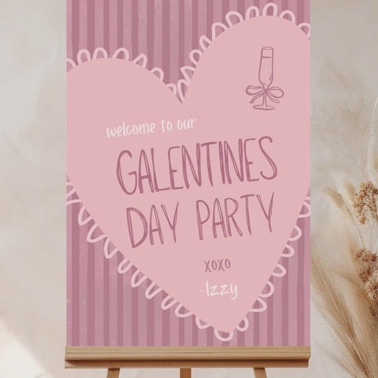 Are you planning an event and want to add your own personal touch? Our stationery designs are perfect for the DIY enthusiast. This galentines or valentines welcome sign is the perfect fit for any type of event or theme. Perfect for a girl's night or an evening of fun with your close ones. Although the background artwork cannot be edited, due to artist Copyright, all text (and its colours) can be customized to your preference. Save time and money without compromising on quality or style by bundling your stationery.