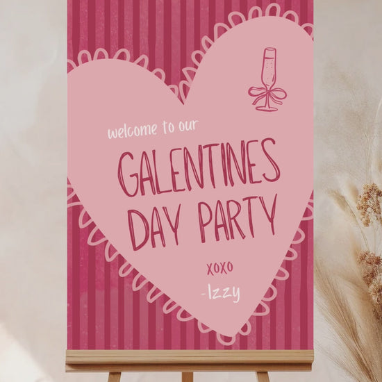 Are you planning an event and want to add your own personal touch? Our stationery designs are perfect for the DIY enthusiast. This galentines or valentines welcome sign is the perfect fit for any type of event or theme. Perfect for a girl's night or an evening of fun with your close ones. Although the background artwork cannot be edited, due to artist Copyright, all text (and its colours) can be customized to your preference. Save time and money without compromising on quality or style by bundling your stationery.