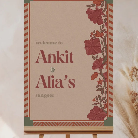Are you planning a wedding event and want to add your own personal touch? Our stationery designs are perfect for the DIY enthusiast. This retro floral welcome sign is the perfect fit for any type of event or theme. Although the background artwork cannot be edited, due to artist Copyright, all text (and its colours) can be customized to your preference. Save time and money without compromising on quality or style by bundling your stationery.