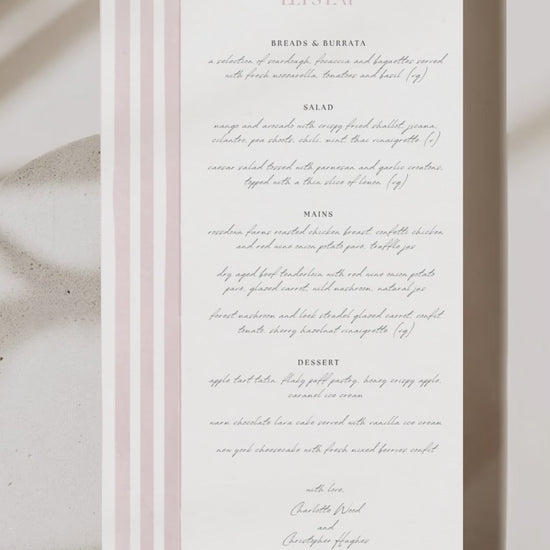 Are you planning a wedding event or any other special celebration and want to add your own personal touch? Our stationery designs are perfect for the DIY enthusiast. This modern striped menu is the perfect fit for any type of event or theme with a contemporary flare. All text (and its colours) can be customized to your preference. The background stripes, due to artist copyright, cannot be edited into colours, but can be adjusted in transparency. Save time and money without compromising on quality or style by bundling your stationery.