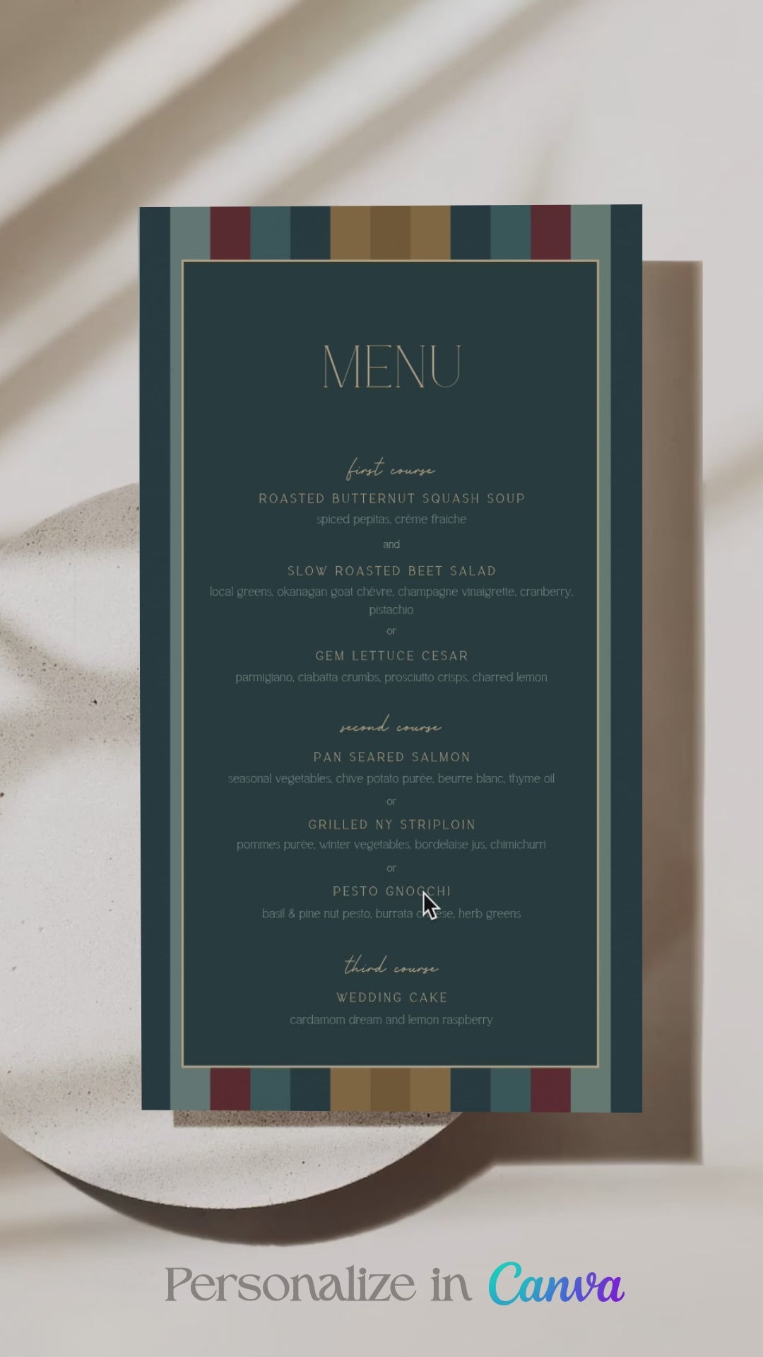 Are you planning a wedding event and want to add your own personal touch? Our stationery designs are perfect for the DIY enthusiast. This modern striped dinner & food menu is the perfect fit for any type of event or theme. It's inspired by Sabyasachi's rich colours & bold combinations. Although the background artwork cannot be edited, due to artist Copyright, all text (and its colours) can be customized to your preference. Save time and money without compromising on quality or style by bundling your stationery.