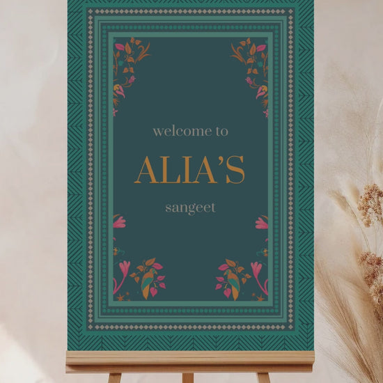 Are you planning a wedding and want to add your own personal touch? Our stationery designs are perfect for the DIY bride. This elegant teal chevron floral welcome sign design is a modern design blending patterns with florals elements together. Although the background floral artwork is not editable (due to artist copyright) the text & background color can be customized to your preference. Save time and money without compromising on quality or style by bundling your stationery.