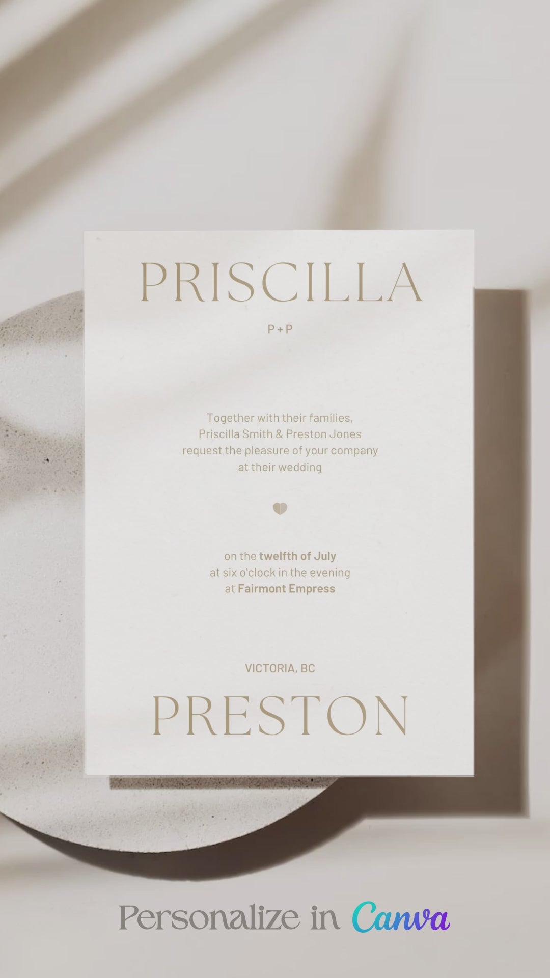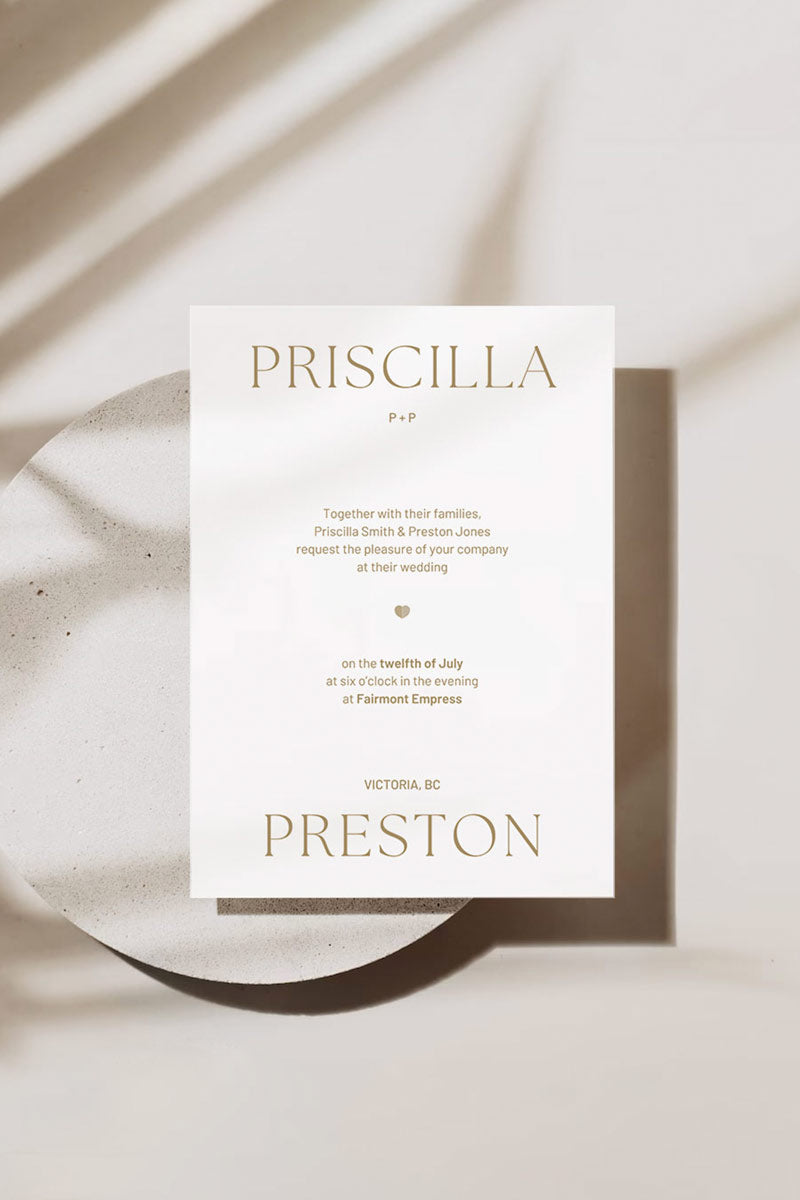 Are you planning a wedding and want to add your own personal touch? Our stationery designs are perfect for the DIY bride. Our minimalistic invitation is chic, elegant, and ready to be personalized for your event. You can customize the text and colours to suit your preference to match your events theme. Due to artist copyright, any artwork elements cannot be edited. Save time and money without compromising on quality or style by bundling your stationery.