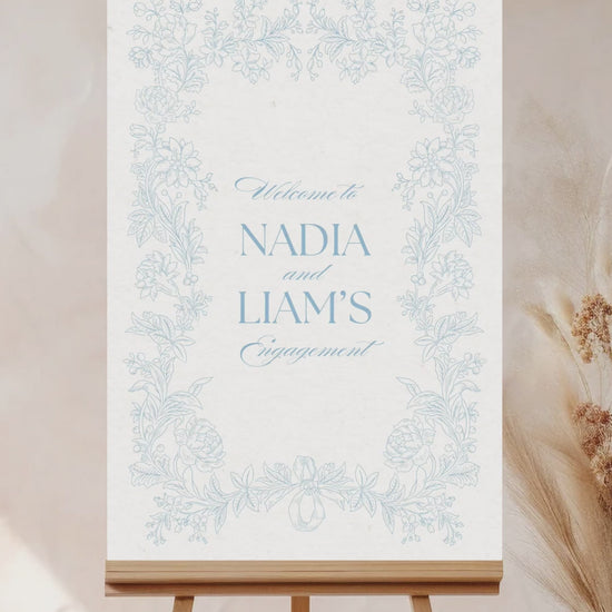 Are you planning a wedding event and want to add your own personal touch? Our stationery designs are perfect for the DIY enthusiast. This floral toile welcome sign is the perfect fit for any type of event or theme. Although the background artwork cannot be edited, due to artist Copyright, its colours and all text (and its colours) can be customized to your preference. Save time and money without compromising on quality or style by bundling your stationery.