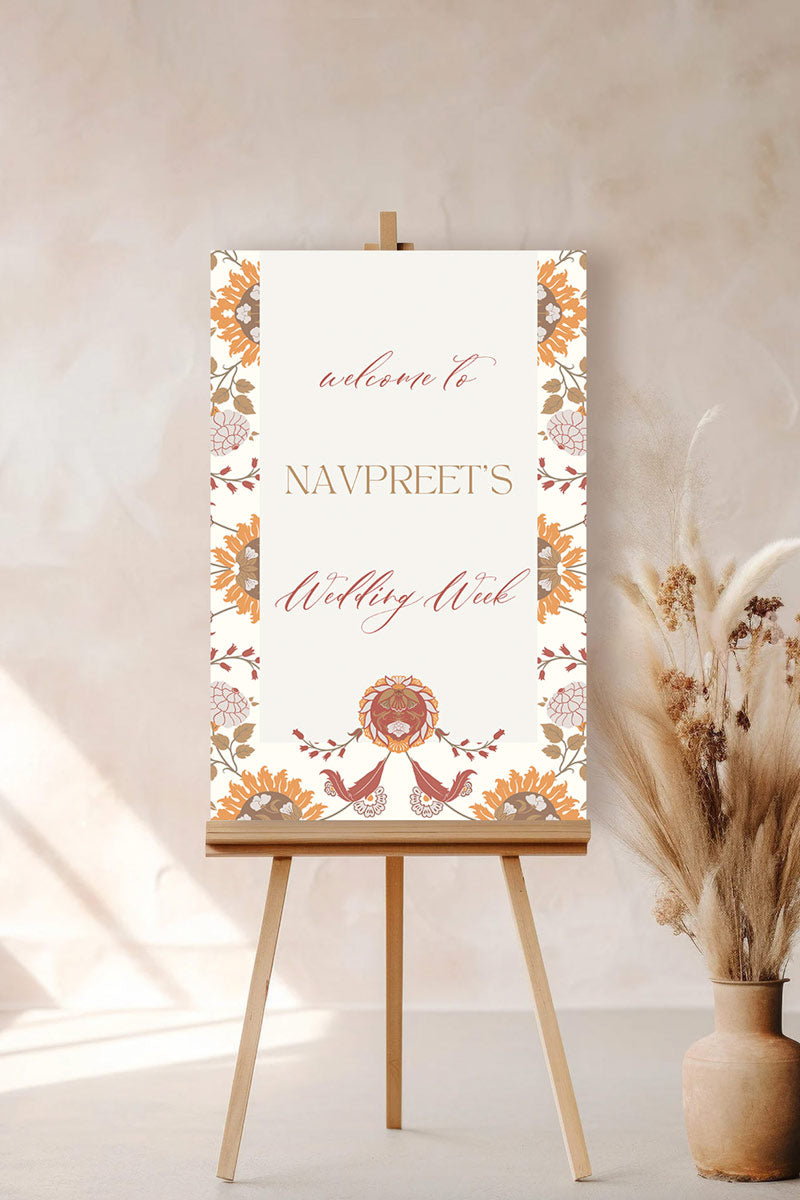 Are you planning a wedding and want to add your own personal touch? Our stationery designs are perfect for the DIY bride. This traditional floral wedding welcome sign is designed to adds both a traditional and modern touch for your event. Although the background floral artwork is not editable (due to artist copyright) the text & background colour can be customized to your preference. Save time and money without compromising on quality or style by bundling your stationery.